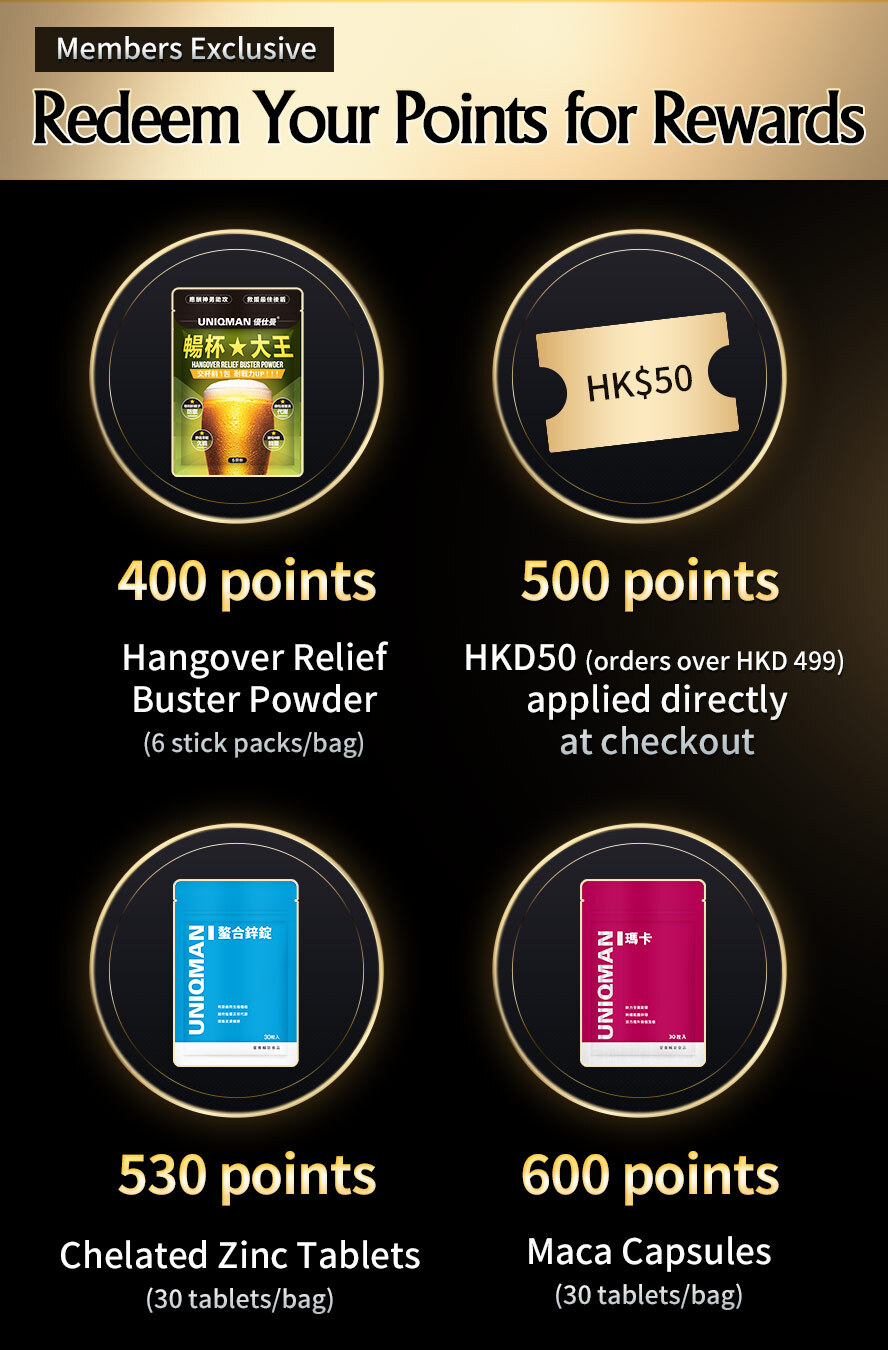 Post a product photo or video on Facebook or Instagram Story,keep it live for 24 hours, and tag @uniqman.hk to earn 100points.