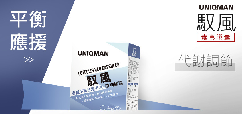 【馭風膠囊】採用日本專利木犀草素(luteolin),有效抑制尿酸生成並促進尿酸排泄的作用,並可舒緩因痛風引起的紅腫疼痛,推薦給尿酸高不適者加強補充。